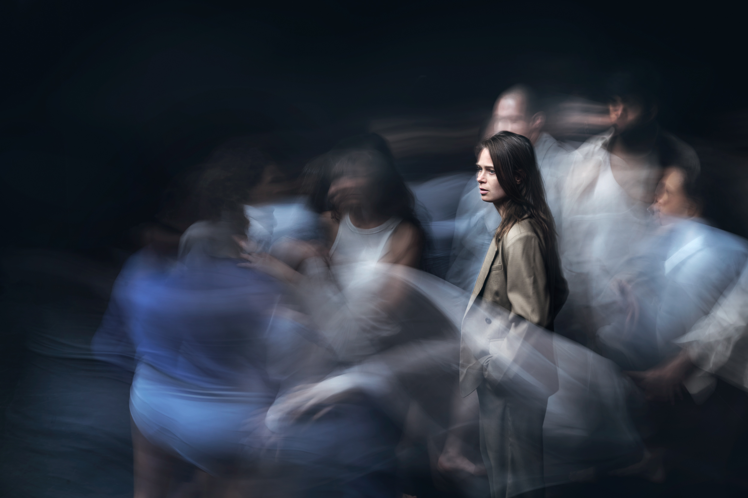 Through subtle shifts in position and gaze, the group becomes a living, morphing image. Riding waves of force that rupture stillness into collapse, collision, ecstatic overcoming. As everything changes, how does a body metabolize the uncontainable?