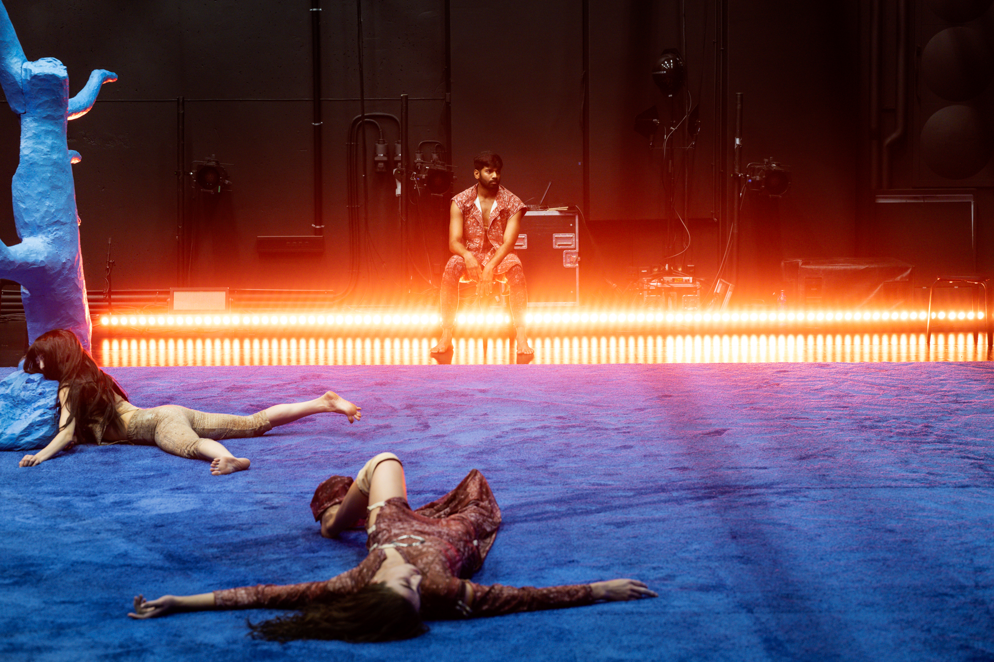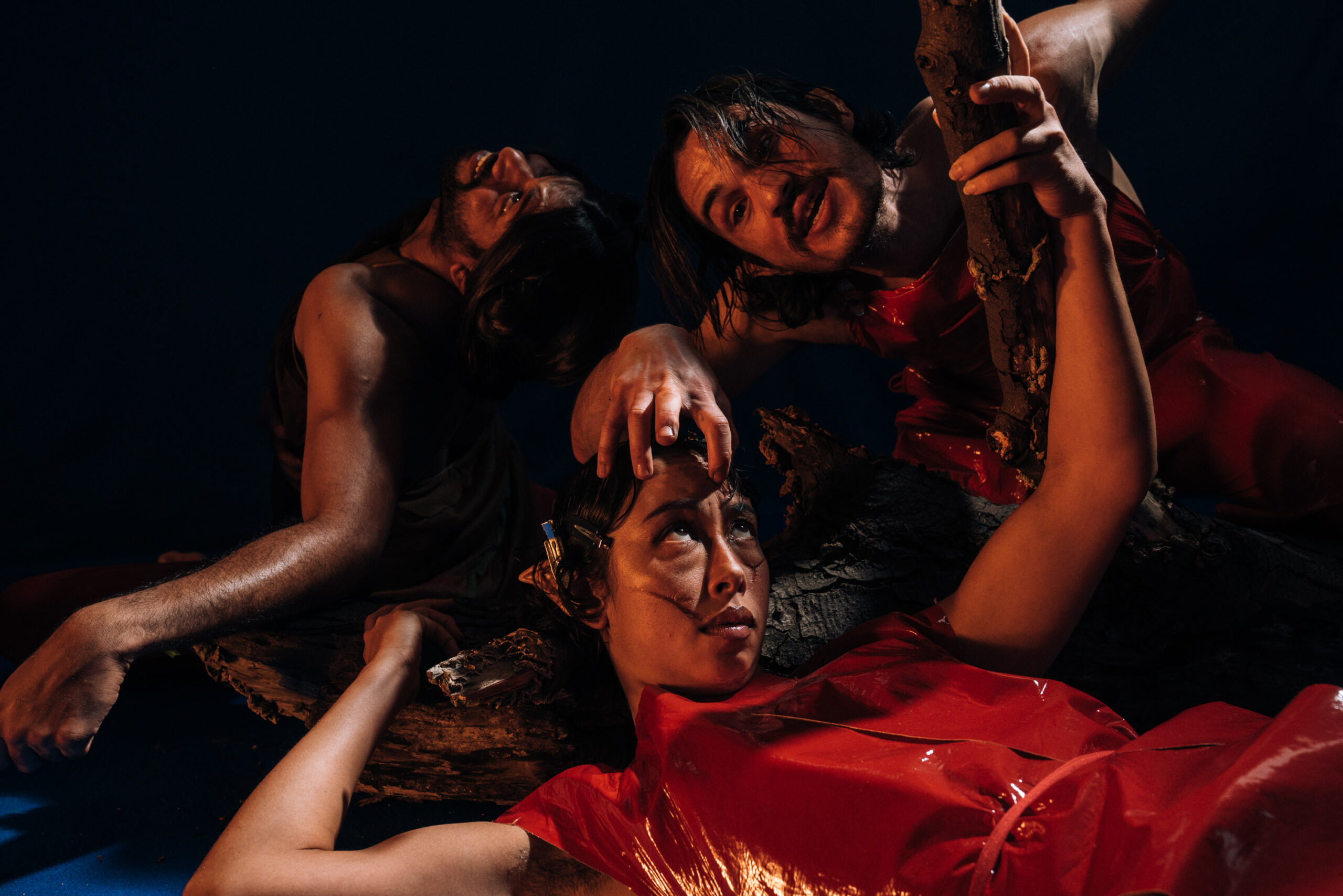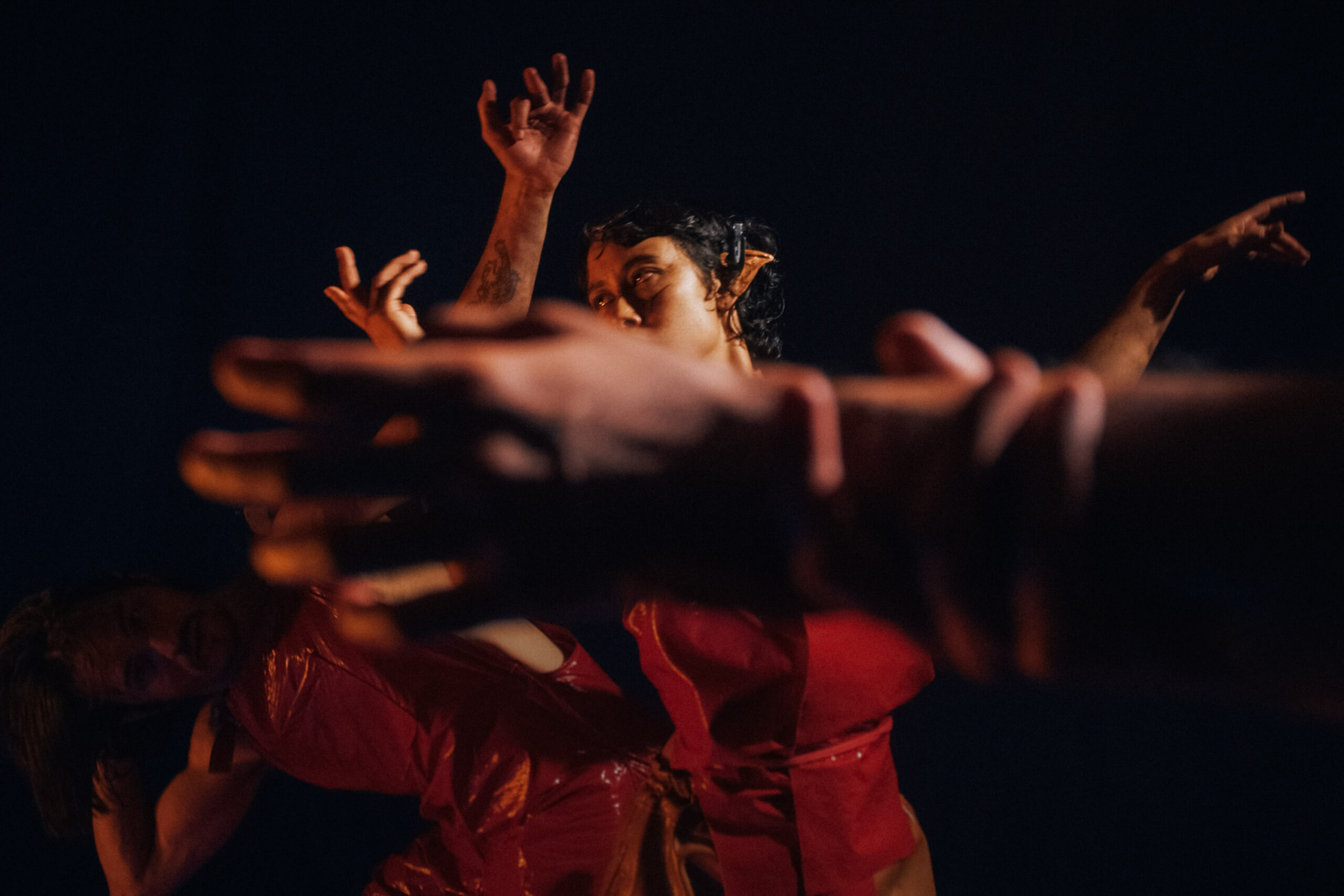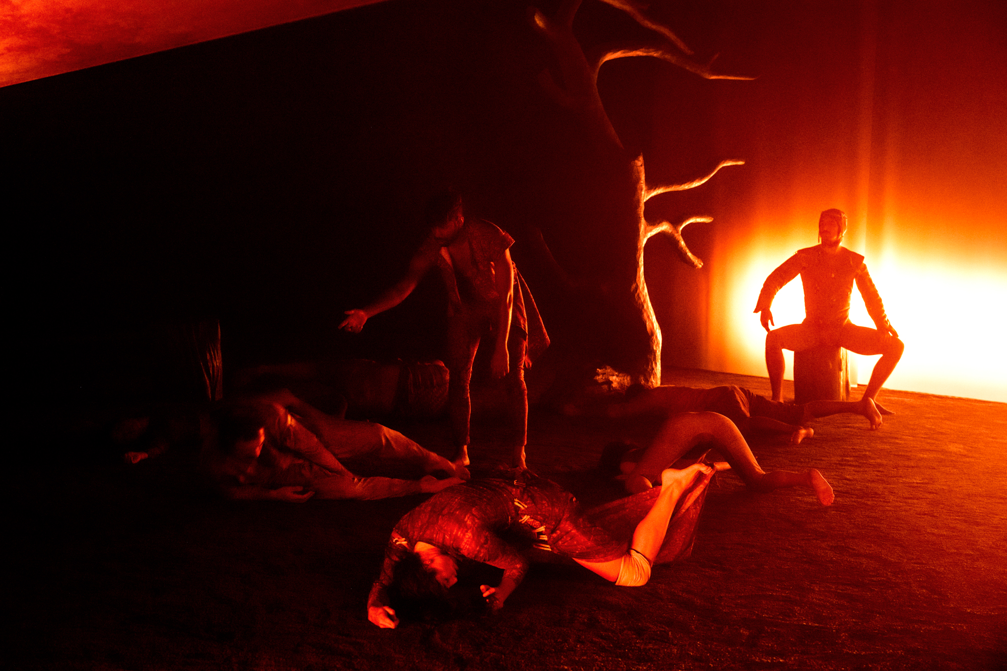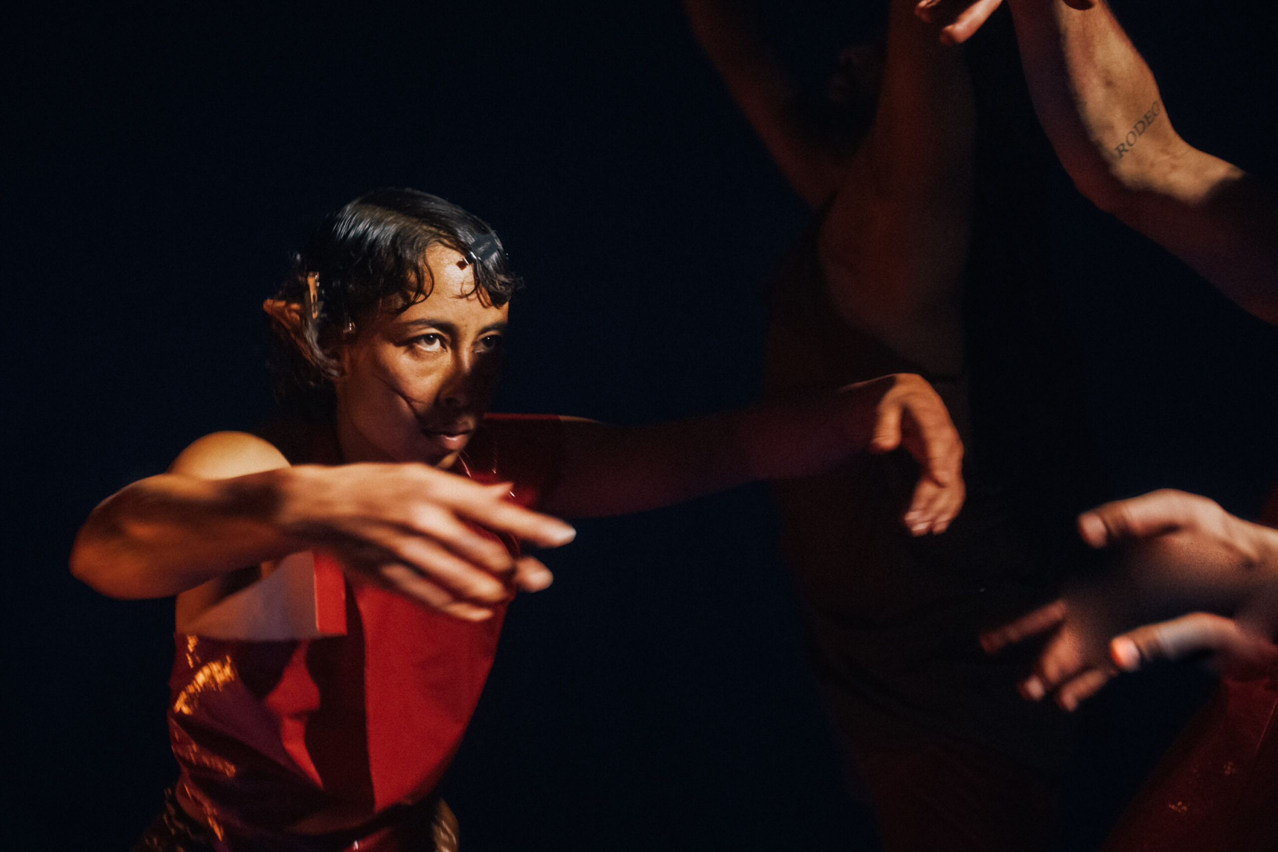 Varje kropp i rummet använder sin egen tyngd som vägledare, men detta formas genom en fysisk praktik jag utvecklat, där vi arbetar med att falla tillsammans – att hitta hud, ben och blod hos oss själva och varandra.
