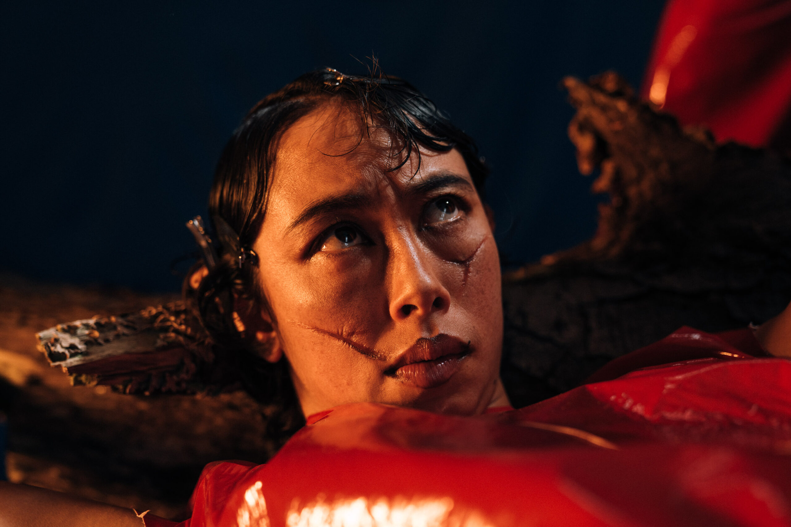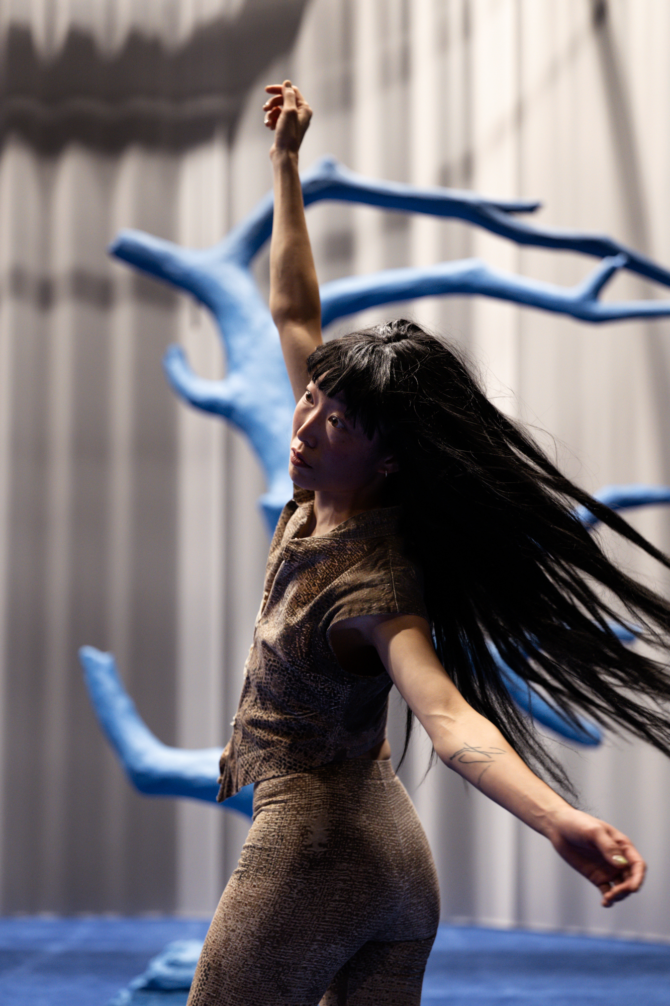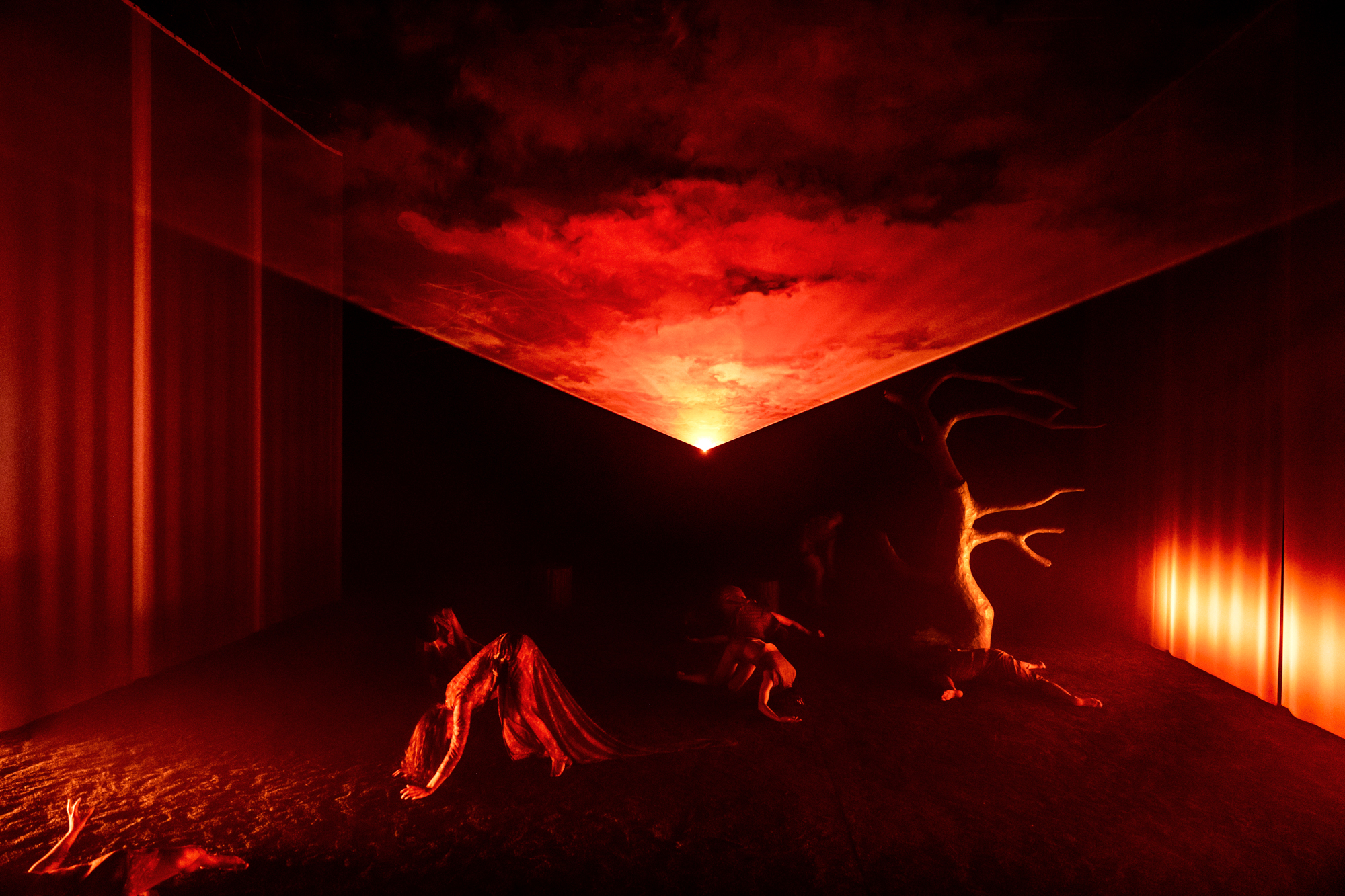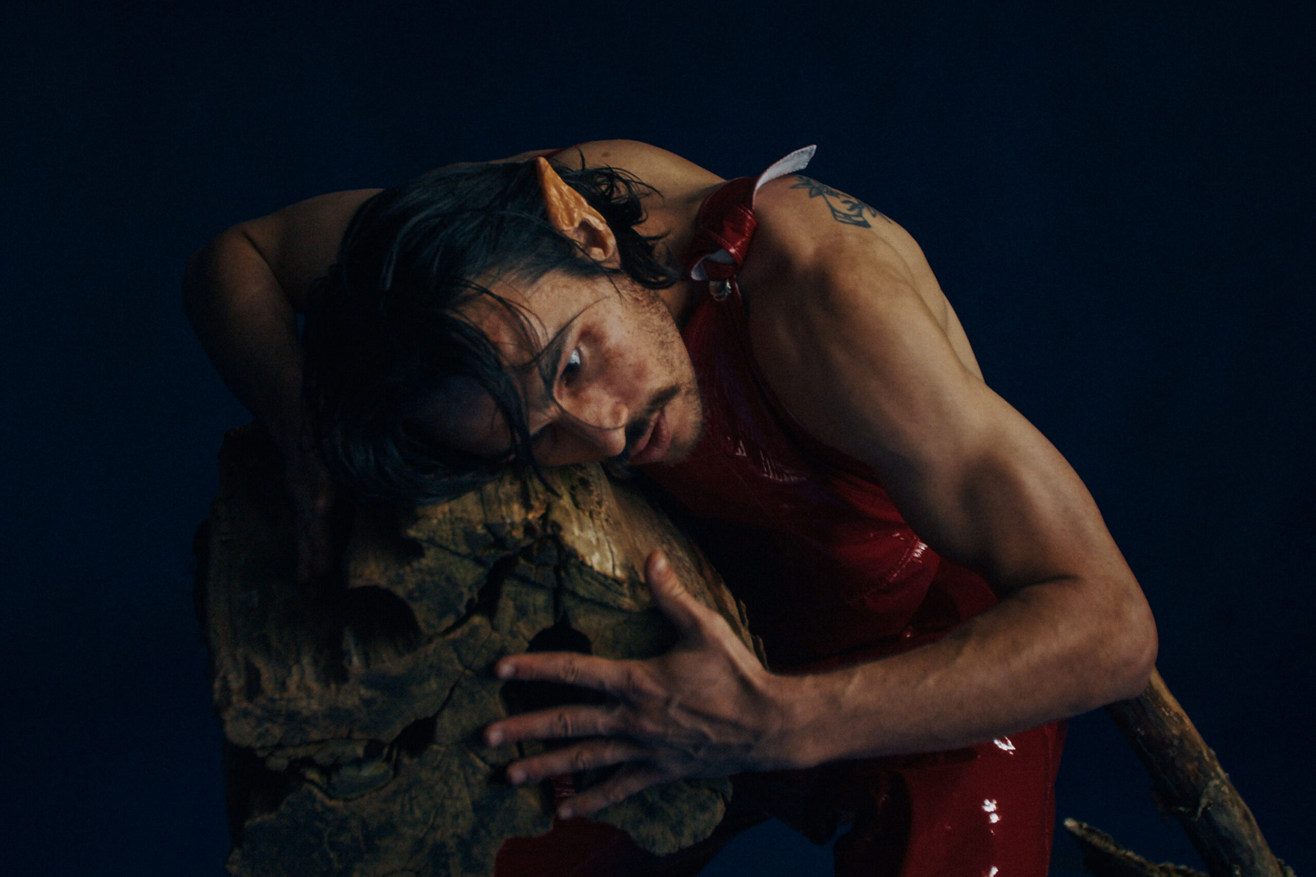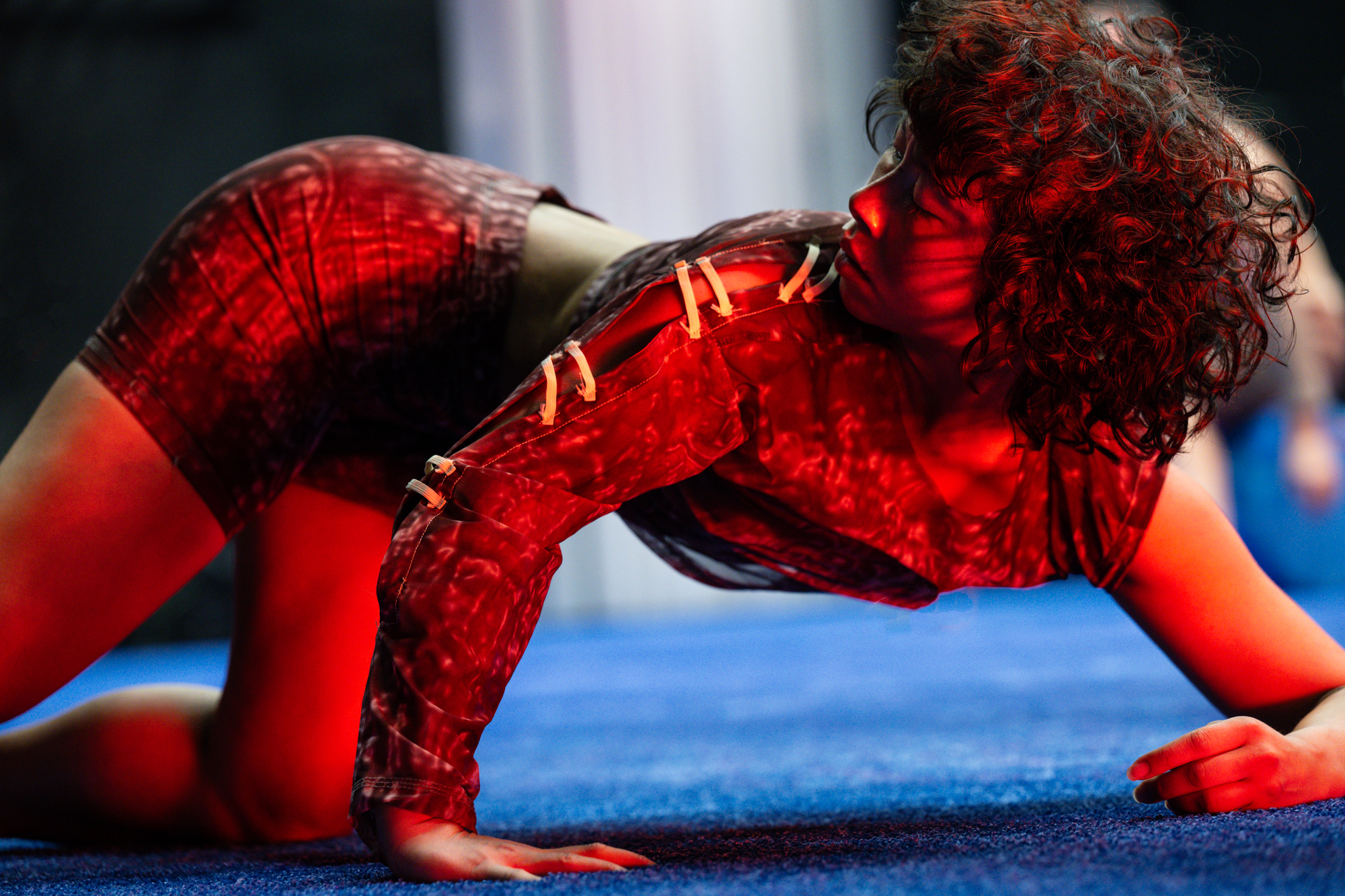 Varje kropp i rummet använder sin egen tyngd som vägledare, men detta formas genom en fysisk praktik jag utvecklat, där vi arbetar med att falla tillsammans – att hitta hud, ben och blod hos oss själva och varandra.